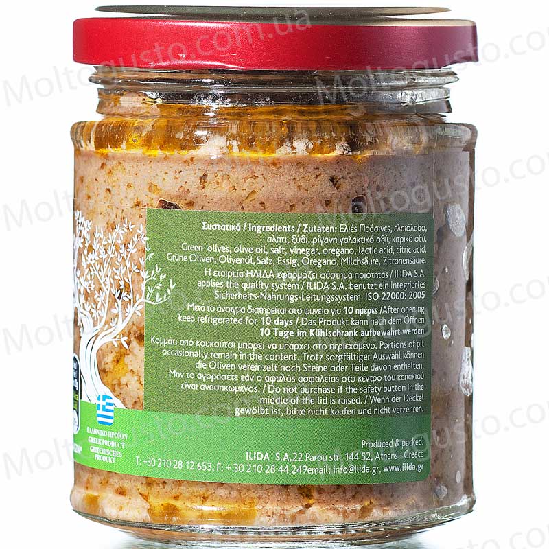 Зеленые оливки, оливковое масло, соль, уксус, орегано, лимонная и молочная кислота